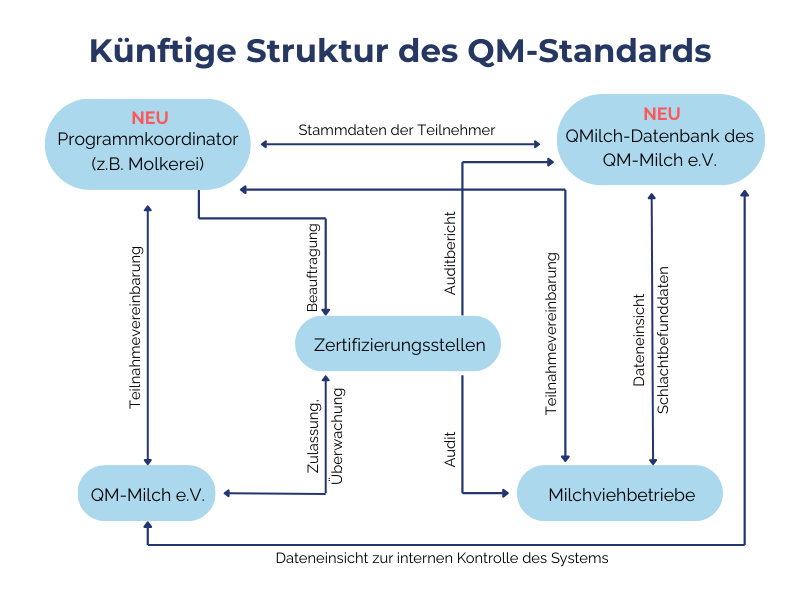 • Die Überwachung der Zertifizierungsstellen (“Kontrolle der Kontrolle”) wird künftig durch den QM-Milch e.V. über ein internes Kontrollsystem organisiert.